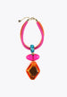 قلادة مع حلية بحجم كبير وقطعة بألوان مختلفة. قفل إغلاق قابل للتعديل وميدالية بتصميم شعار الماركة.
