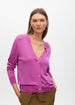 Closed cardigan in cool knit with elegant rib. Metal jewel buttons add sophistication. Classic cut with V-neck...