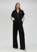 Flowing black knit trousers with side pockets.